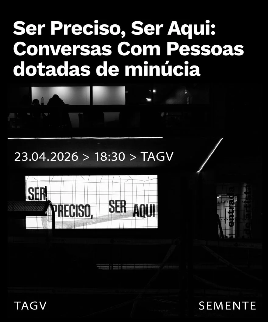 Convidados a anunciar em breveAo par de convidados é apenas pedido que pense, antecipadamente, na primeira resposta, que surgirá na sequência da pergunta: 𝒐 𝒒𝒖𝒆 é 𝒒𝒖𝒆 é 𝒑𝒓𝒆𝒄𝒊𝒔𝒐? Nestas conversas, a expressão “é preciso” abre espaço à manifestação pessoal de formas de compreender o mundo e o nosso lugar nele. | Este é um ciclo de conversas mensais alternadamente entre os espaços do Semente Atelier e o TAGV.