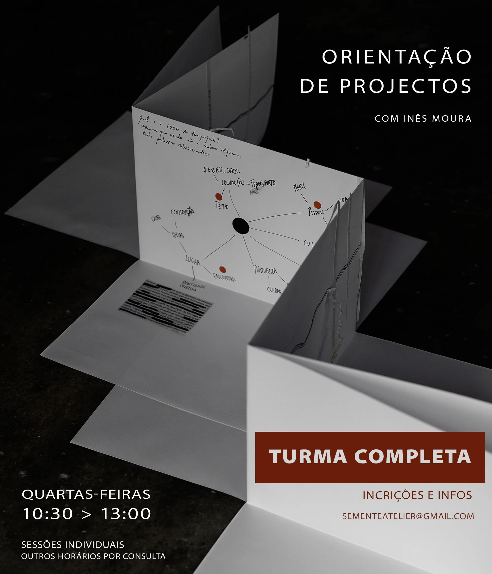 Para quem tem um projeto específico ou deseja concretizar uma ideia, mas não sabe que metodologia adotar, ou para quem quer desenvolver o seu sentido estético e enriquecer o seu repertório artístico, este grupo de trabalho coletivo, orientado por Inês Moura, visa desenvolver competências nas áreas da arte, comunicação e expressão. -