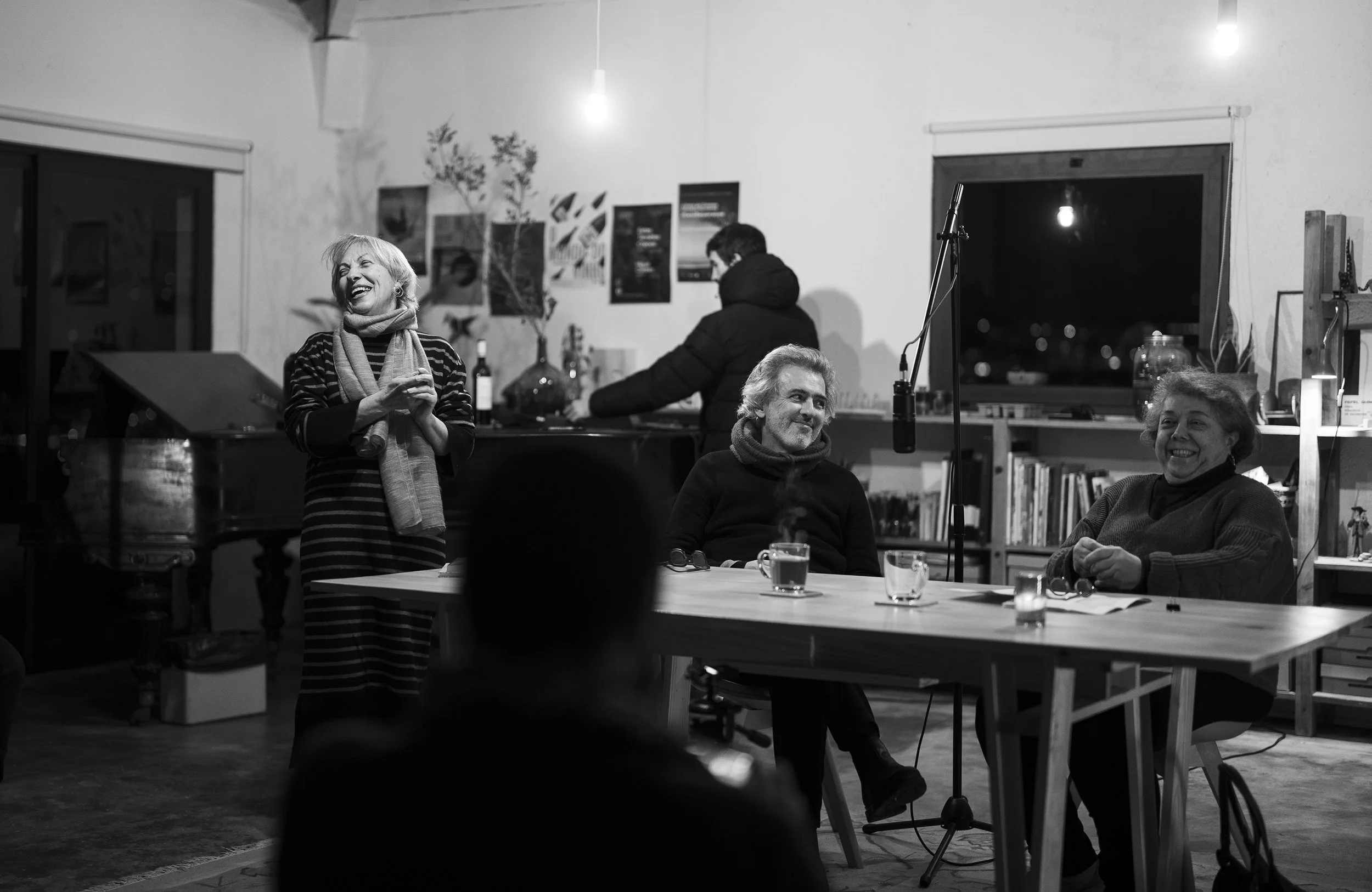 Entre objectos que parecem ter caído do céu e outros que silenciosamente se encontravam à espera para ser guardados como tesouros, os nossos convidados do mês de Março falaram-nos de memórias sobre momentos chaves das suas vidas. Trocaram poemas, partilharam um fictício programa de rádio e encontraram semelhanças nas suas trajetórias mesmo marcadas por décadas de diferença. E não, não nos referimos apenas aos bigodes. Ser Preciso, Ser Aqui: é o compromisso mensal entre o Semente Atelier e o Teatro Académido Gil Vivente, porque é preciso fazer alguma coisa. Ou pode ser preciso se. E, afinal, talvez não fosse preciso nada.Reportagem Fotográfica